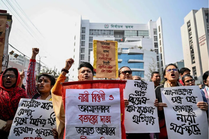 Bangladeşli kadınlar; gelecek seçimde adalet ve siyasi temsiliyet talep etmek için 9 Şubat günü Dakka sokaklarında ellerinde meşalelerle yürüdü. 12 Şubat’ta oy vermenin önünü açan 2024 ayaklanmasına öncülük etmiş olsalar da kadınlar, politik arenadan büyük ölçüde dışlanıyor.